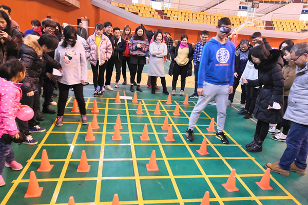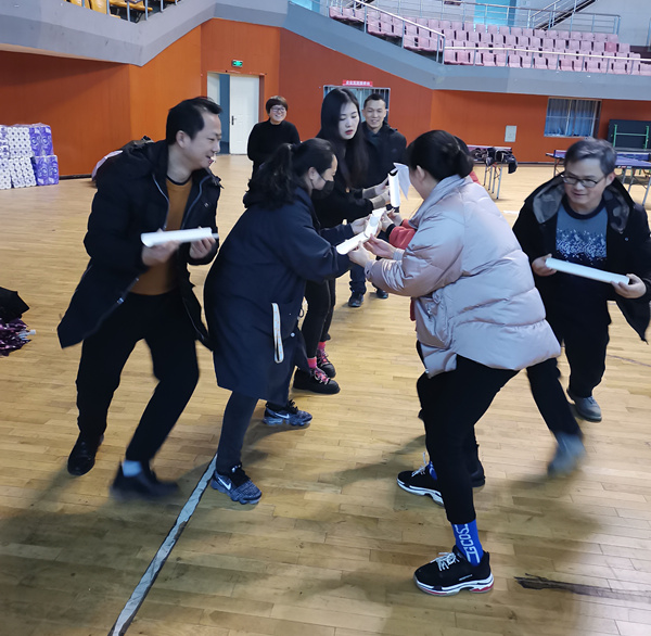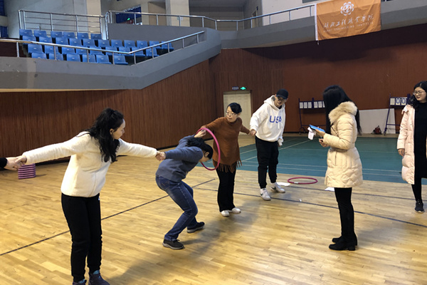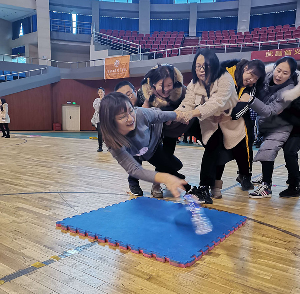 1月9日中午,由学生处主办的第十三期辅导员沙龙之团体拓展活动在体育馆举行。全体辅导员参加。
