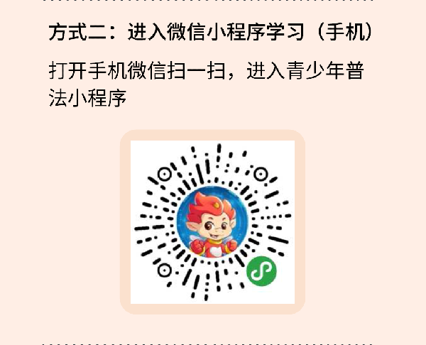 各院、部负责组织学生登录教育部全国青少年普法网(以下简称“普法网”https://qspfw.moe.gov.cn,),在第六届全国学生“学宪法 讲宪法”活动专题页面进行在线学习、练习和综合评价(学生可通过微信扫二维码登录网站,账号为个人身份证号,密码为身份证后6位,最后一位是字母的,字母为大写;辅导员登录账号为手机号,密码为姓名小写全拼+手机号后4位)。截至2021年11月20日,学工部将对各院、部学生在线学习、练习与综合评价参与情况进行统计,并予以通报。