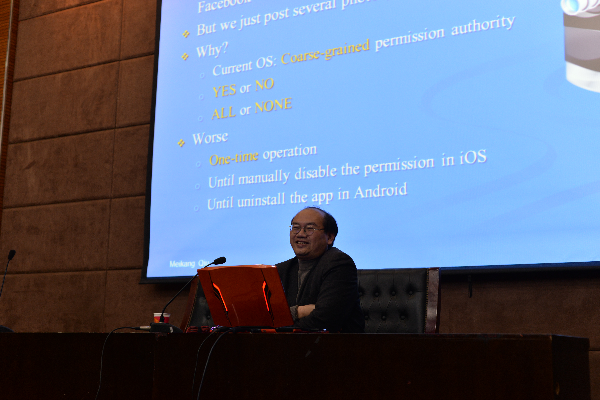 信息日益膨胀的当下,我们该怎样保护自己的隐私以防止隐私的泄露。12月17日晚,美国佩斯大学邱美康博士做客第104期南湖讲坛,以“移动云环境下的隐私保护技术”为题开展讲座。信科院副院长顾兵到会聆听。 邱美康博士从移动手机上的隐私保护问题、数据的过量采集造成的隐私泄露、使用云端保护隐私信息、云端怎样保护隐私信息、云端对保护隐私信息的贡献五个层面详细讲解。 他说,人们在享受互联网技术和移动通信技术提供的便捷服务的同时,终端承载的大量个人隐私信息可能会遭到泄露。他展示了近年电脑用户和移动手机用户的增长数据。数据显示,移动手机用户增长速度较快,并且手机储存量上升飞快,手机中的移动设备、软件承载有用户隐私、照片、日程表、通讯录等个人信息,这些设备、软件的安全系数并不高,所以数据的大量采集可能会造成用户隐私信息的大量泄漏。通过对用户信息的行为分析,就可以掌握用户的所有情况。 针对这一现实,邱博士建议:“随着隐私信息的大量增加,把隐私放到云端,云端会进行加密、授权、对软件的安全风险进行发打分等一系列安全措施,这样,隐私的安全性会大大提高。另外,云服务器有足够的储存空间,可以针对软件的安全风险进行量化处理。” 讲座后,物联网2015级张智钧同学说:“我们的日常生活、情绪、想法都通过电脑或者手机形成数据,记录在网络上的各种应用系统中,隐私保护对手机和网络用户越来越重要,邱教授介绍的云端保护技术感觉很可靠、值得信赖。” 邱美康,现任佩斯大学副教授,哥伦比亚大学客座教授,是国际电气电子工程师协会(IEEE)以及美国计算机协会(ACM)的高级会员。