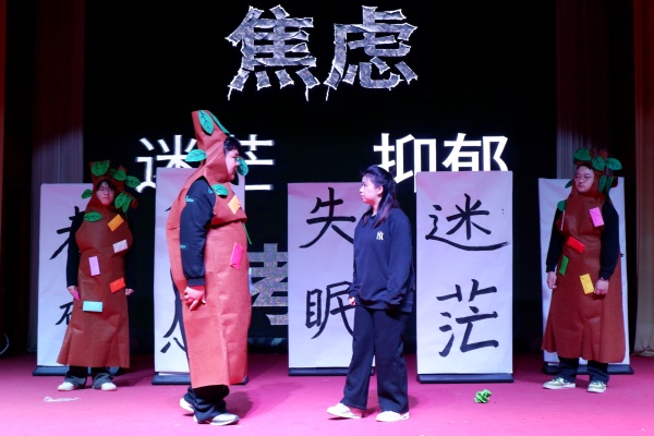 经过初赛的激烈角逐,9支参赛队伍凭借优异表现脱颖而出,成功晋级决赛。各参赛队均以自己独特的节目演绎形式,传递着促进心理健康的理念和要义。如新闻与文法学院选送的《双生》创新采用 “同一角色双重演绎” 的舞台剧形式,主演们通过极具张力的 “牵制与共舞” 表演,细腻呈现出与自我和解的内心历程。信息科学与技术学院选送的《与i同行》巧妙融入吉他弹唱与街舞表演元素,以富有感染力的舞台语言,鼓励观众挣脱 “内向” 的束缚,勇于展现真实自我。城市建设学院带来的《微光破晓》则以树洞答疑为主线,传递出 “慢半拍” 的人生态度亦有其独特价值的理念,引发在场观众的深刻共鸣。